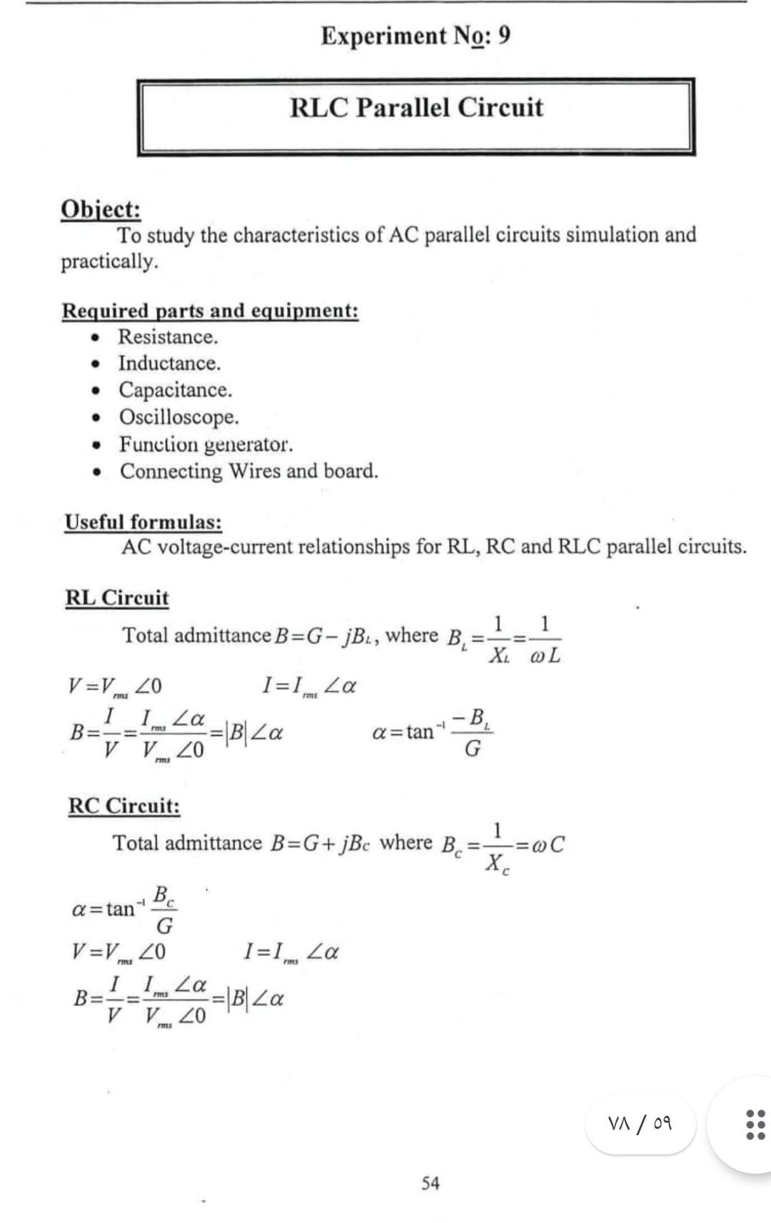 Solved Experiment No 9 Rlc Parallel Circuit Object To Chegg Com